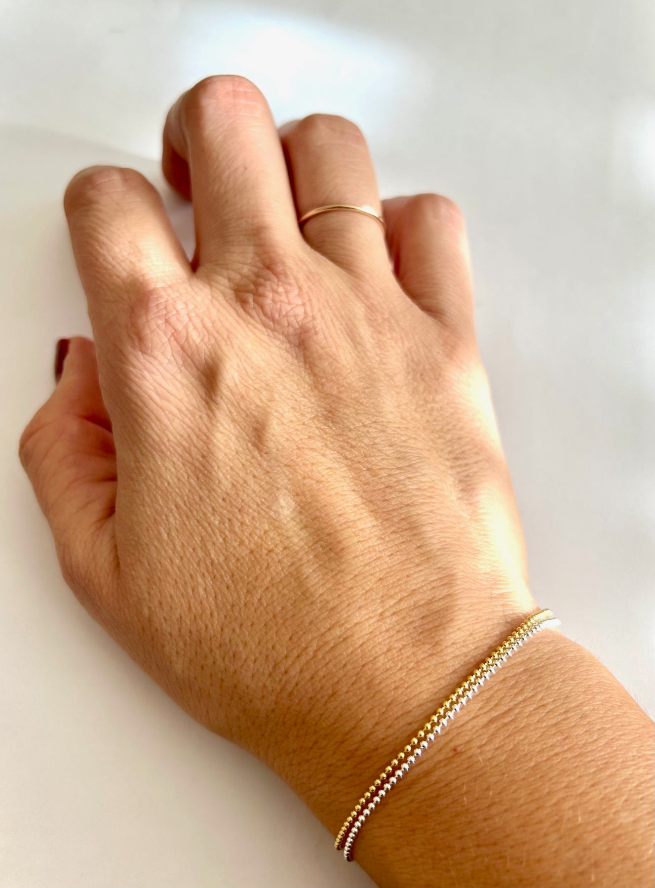 The ESSENTIALS Pois Boule Bracelet is an elegant alternative to the usual chain. A dainty, contemporary & timeless bracelet that goes with every outfit, light and sleek.