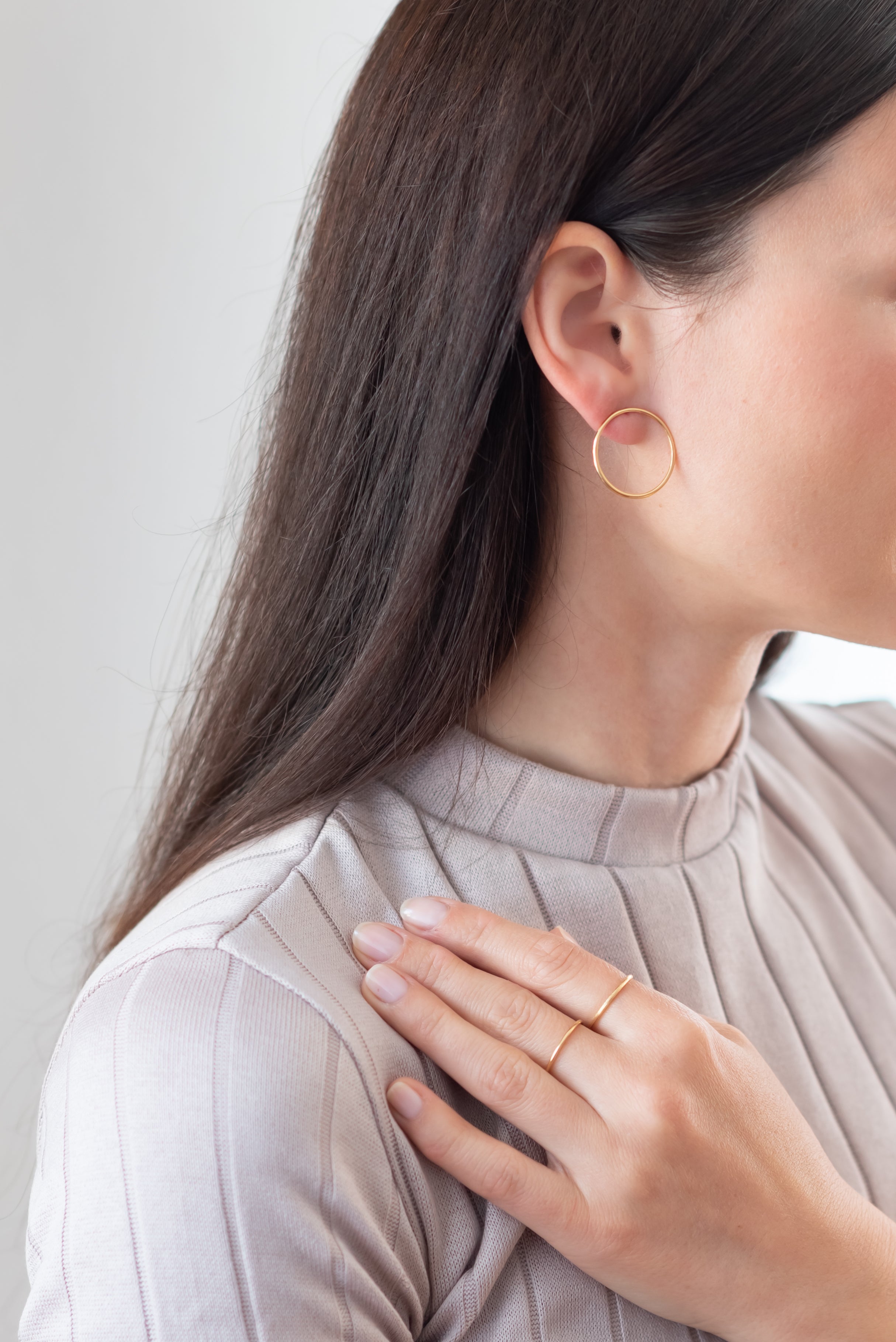 The "Billabong" Circle Earrings are a medium sized hand-finished minimal geometrical pair of earrings.