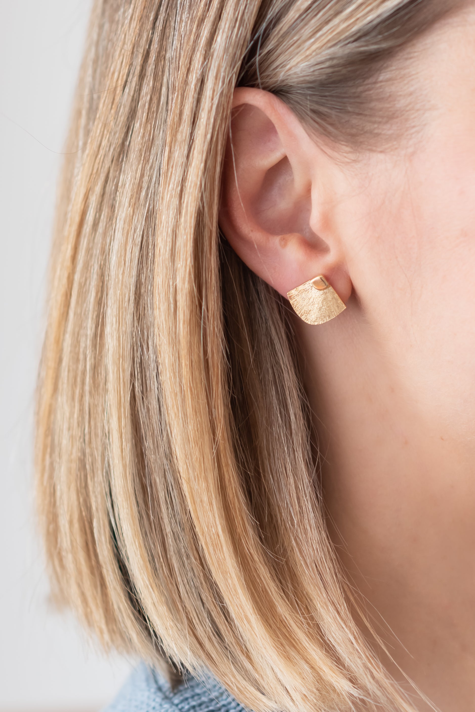 All gold plated versions have undergone a thick 18Kt gold plating process. The backing part behind the earlobe is made of 925 silver in each version. Nickel-free.