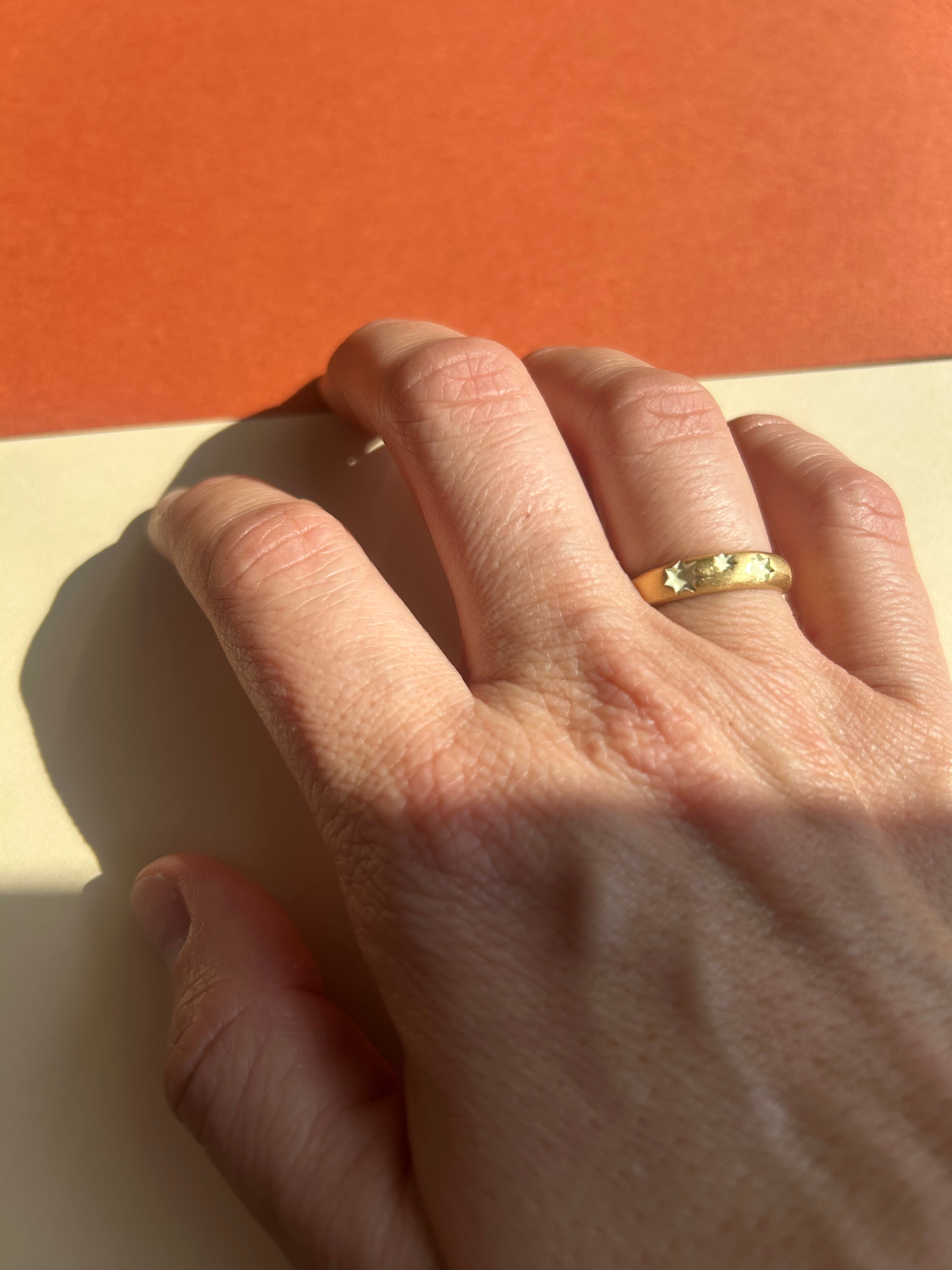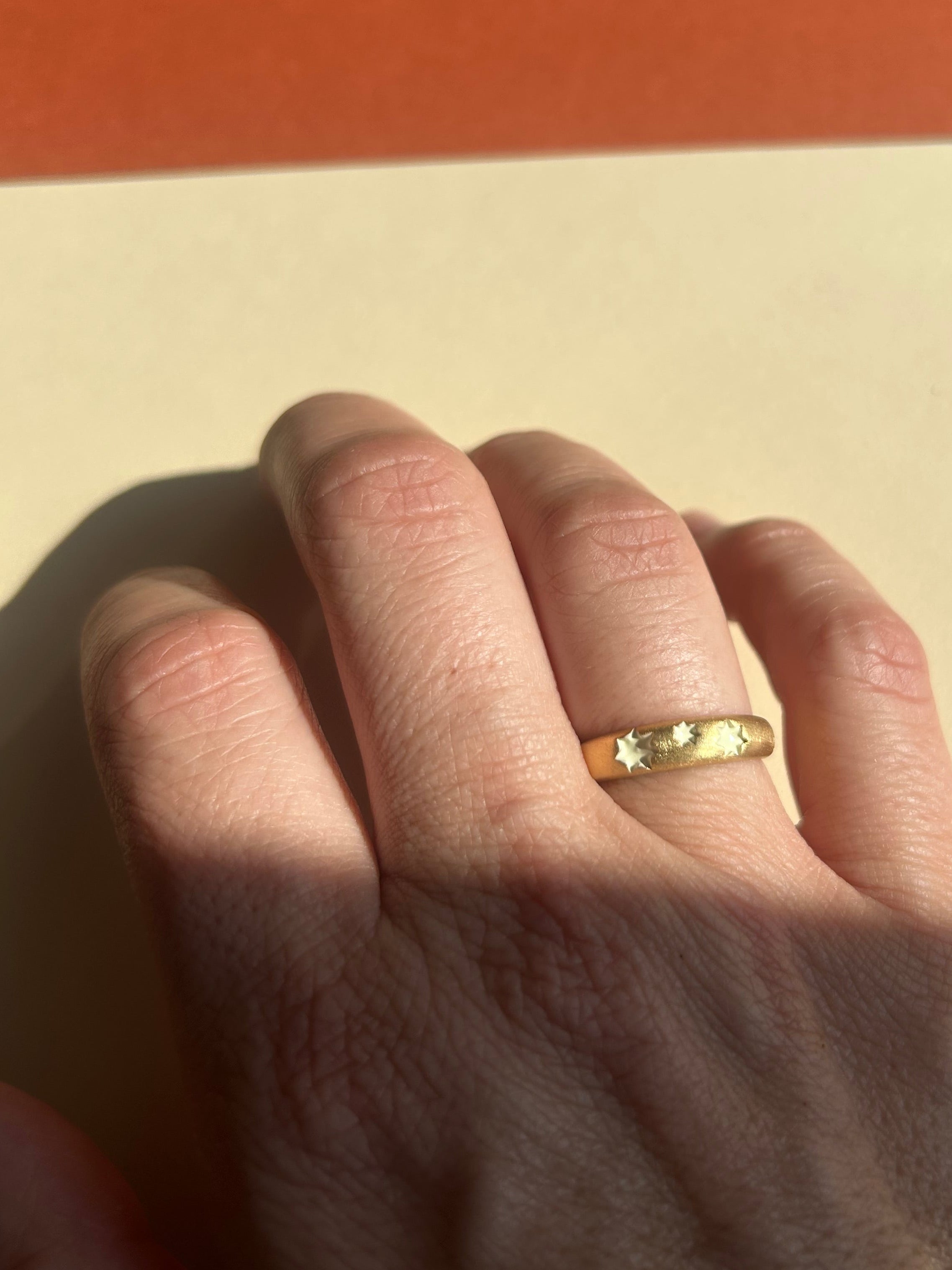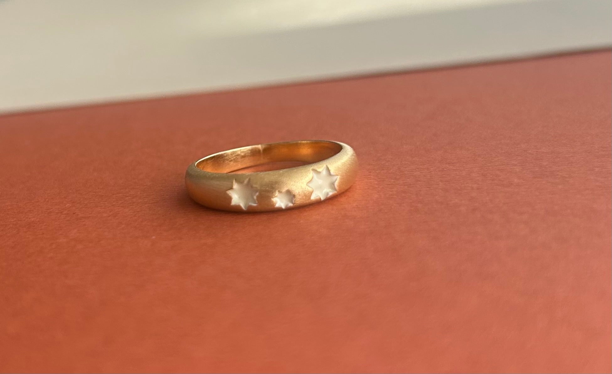 The STAR*ina ‘Limited Edition’ Ring with Off White Enamel part of the "STAR*ina" Collection by V Design Lab. This Collection is inspired by the 7 pointy Southern Cross Star that one can see from the Southern Hemisphere. "Ina" stands for the nickname I used for my grandma on my mom's side. Designed in Zurich and hand-finished in Italy.