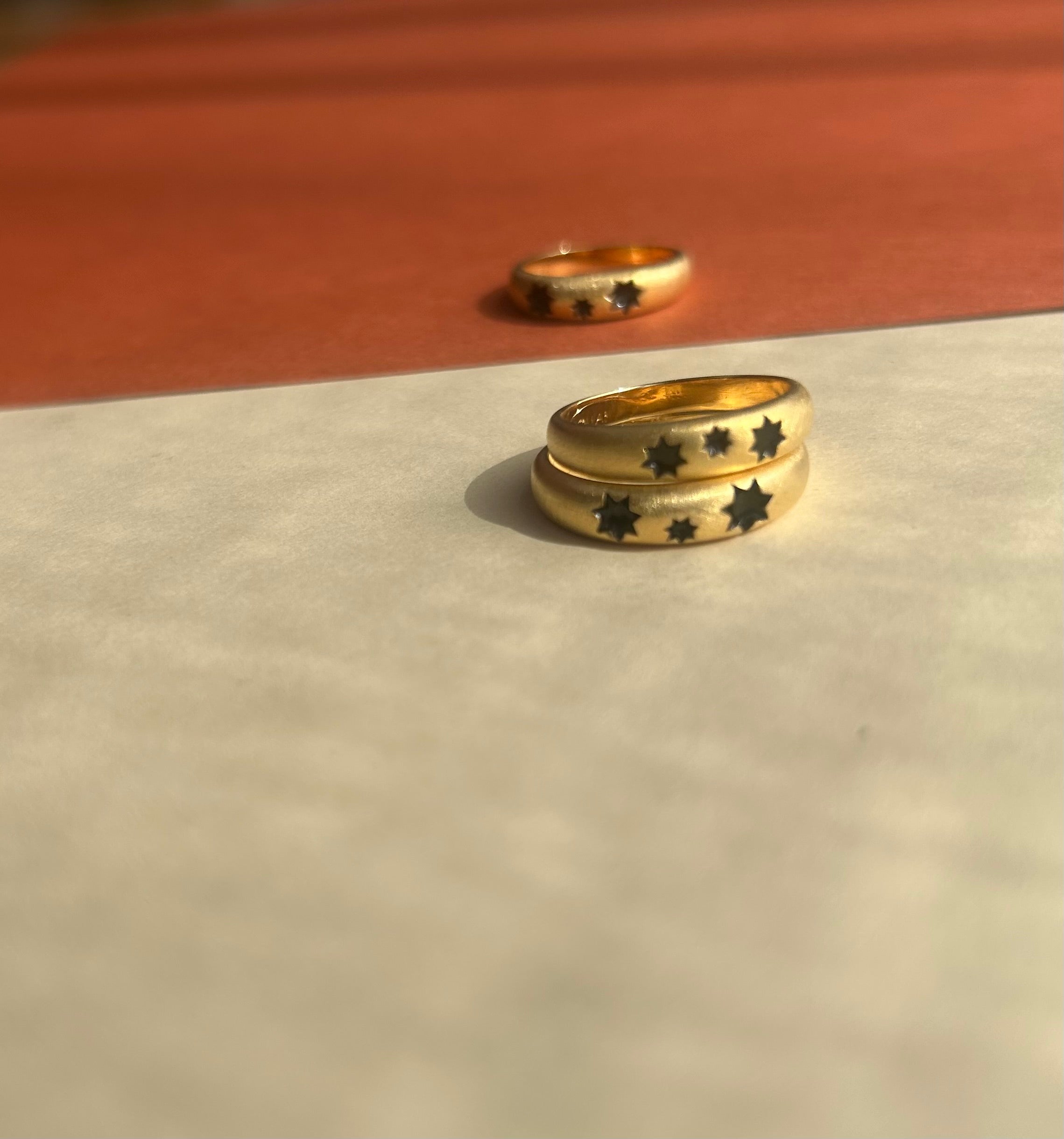 The STAR*ina ‘Limited Edition’ Ring with Black Enamel part of the "STAR*ina" Collection by V Design Lab. This Collection is inspired by the 7 pointy Southern Cross Star that one can see from the Southern Hemisphere. "Ina" stands for the nickname I used for my grandma on my mom's side. Designed in Zurich and hand-finished in Italy.